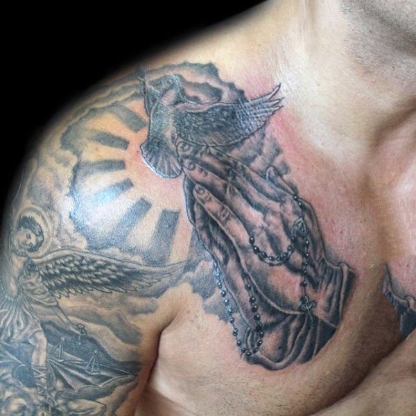 祈祷之手纹身图 黑灰写实的祈祷之手纹身图案