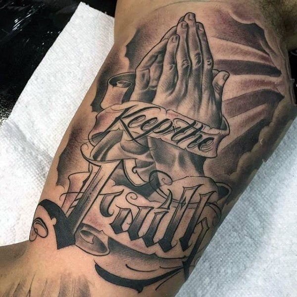 祈祷之手纹身图 黑灰写实的祈祷之手纹身图案