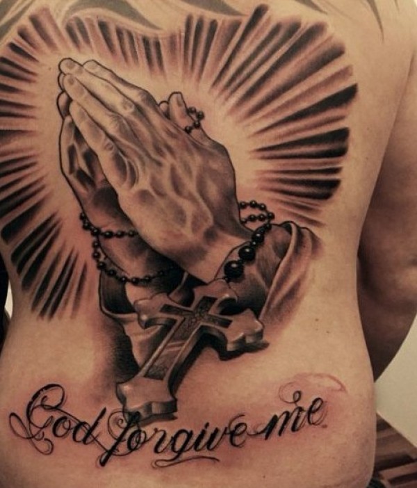 祈祷之手纹身图 黑灰写实的祈祷之手纹身图案