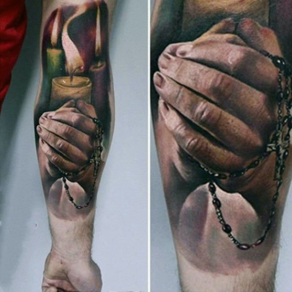 祈祷之手纹身图 黑灰写实的祈祷之手纹身图案