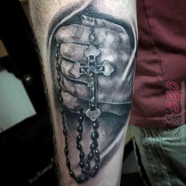 祈祷之手纹身图 黑灰写实的祈祷之手纹身图案