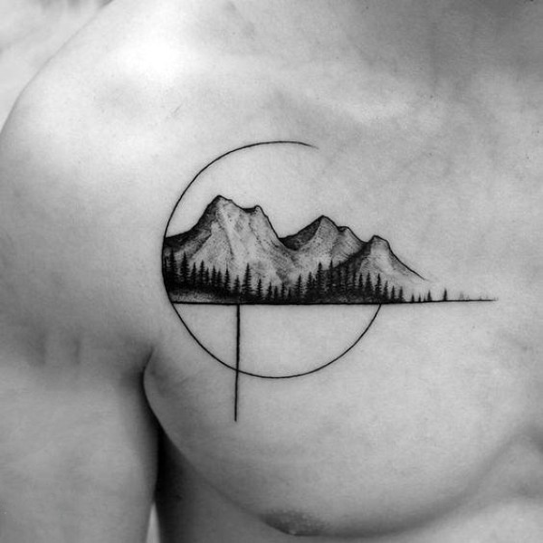 山脉纹身 几何设计感的山脉纹身图案