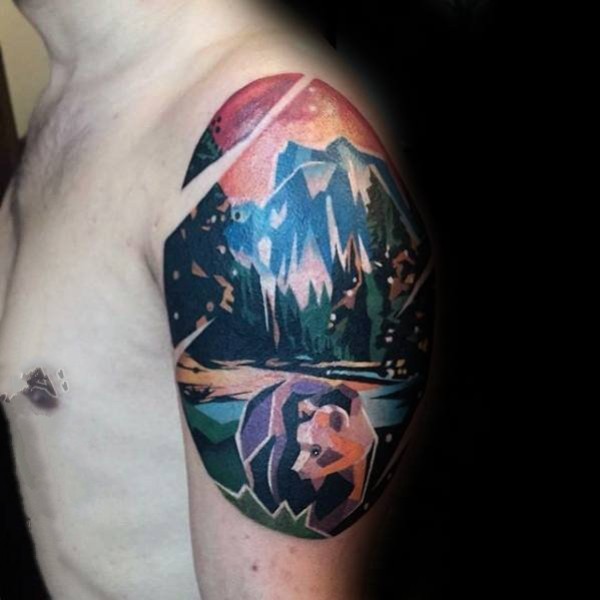 一组大胆的水彩泼墨彩绘技巧渐变纹身图案大全