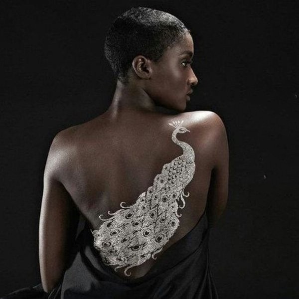 纹身图吧分享一张满背的彩色创意孔雀文身作品