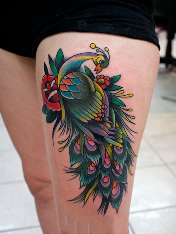 色彩艳丽的孔雀纹身图案