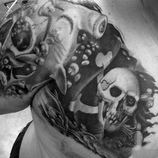 海盗骷髅纹身图案 多款黑灰海盗骷髅纹身图案