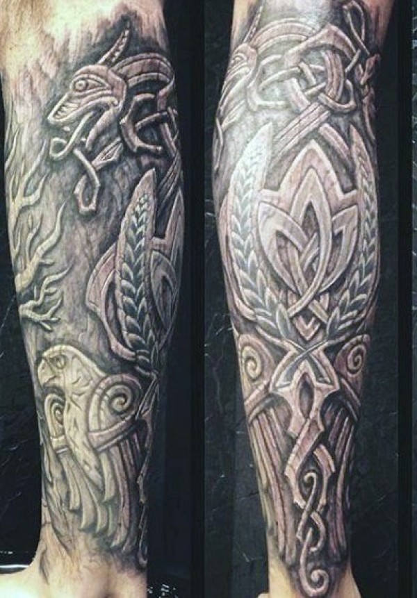花腿纹身--一组大黑腿纹身图案作品欣赏