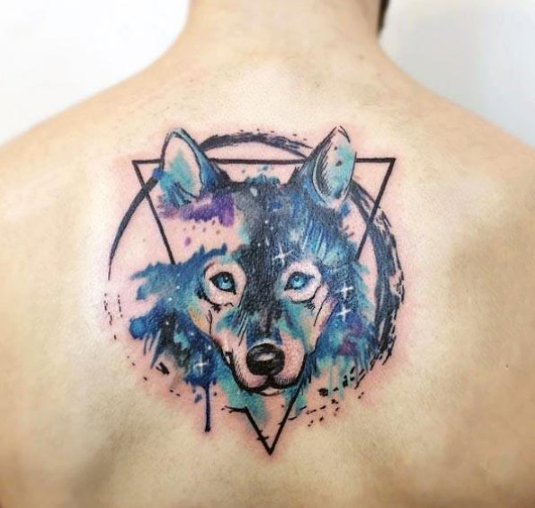 狼头纹身图片 多款水彩晕染的狼头纹身图案