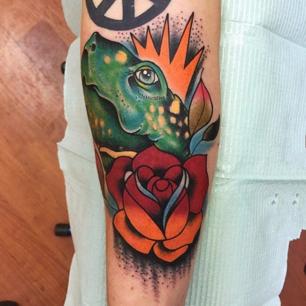 德国恐龙纹身眼镜蛇和卡通鳄鱼纹身水彩动物图案纹身