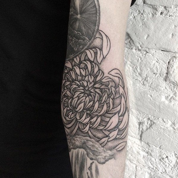 欧美玫瑰纹身 男生手臂上花朵纹身图片