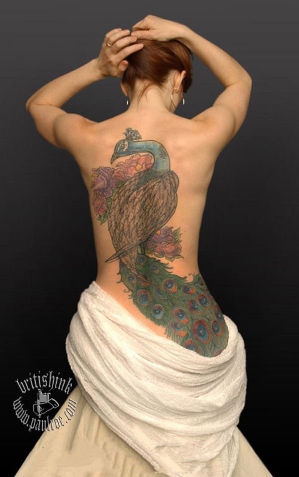 孔雀纹身图片 色彩绚丽的孔雀纹身图案
