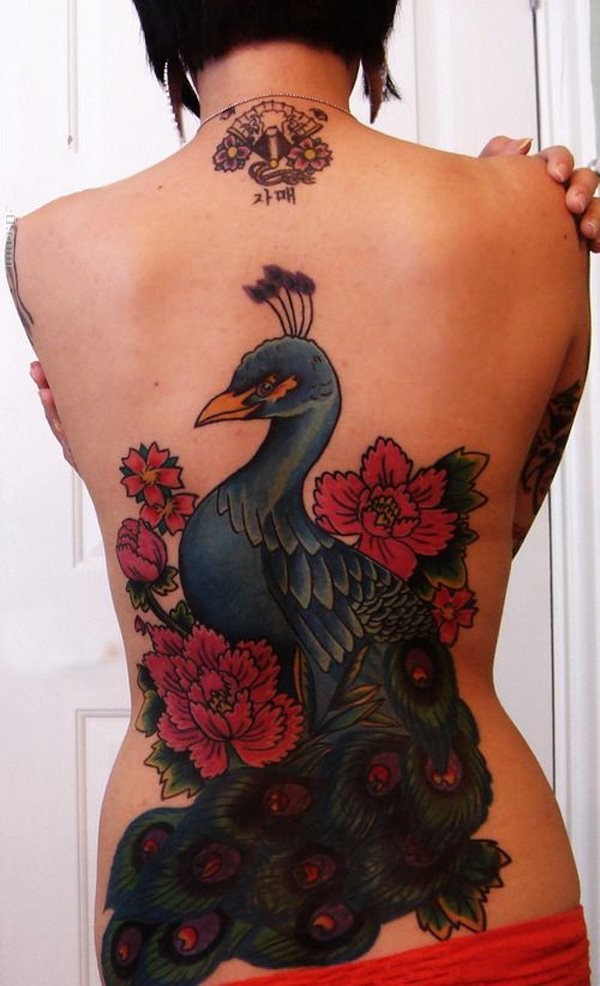 孔雀纹身图片 色彩绚丽的孔雀纹身图案