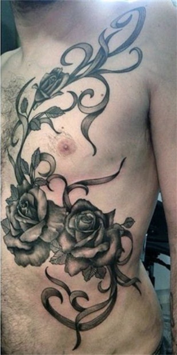 纹身唯美图片 花枝招展的玫瑰纹身图案