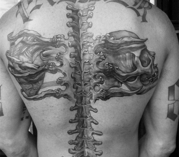 脊柱纹身男 设计感十足的男生脊柱纹身图案