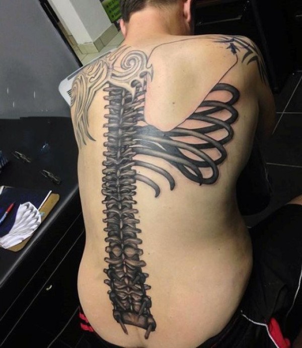 脊柱纹身男 设计感十足的男生脊柱纹身图案