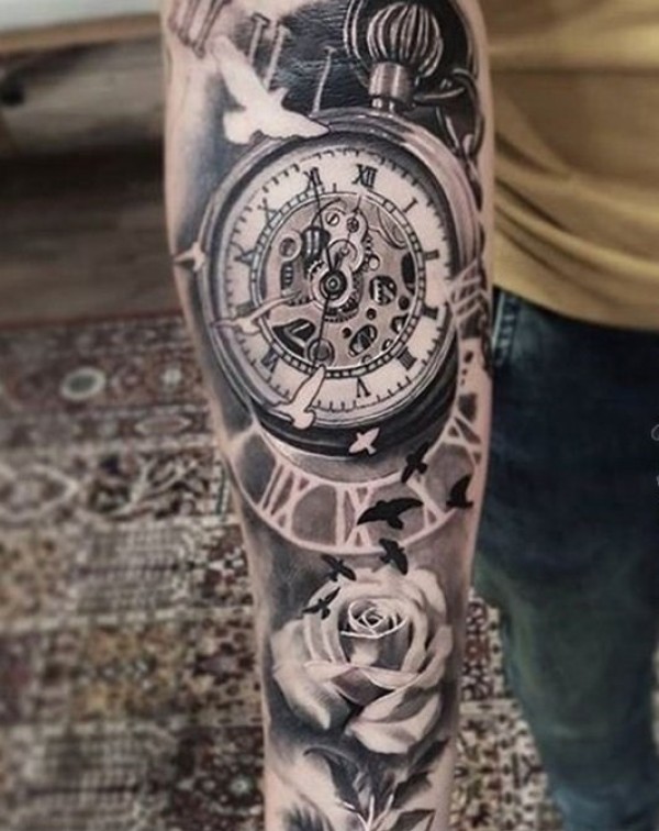时钟纹身 记录时光流逝的时钟纹身图案