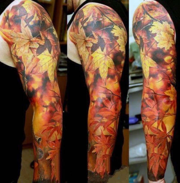 枫叶纹身图 多款色彩绚丽的枫叶纹身图案