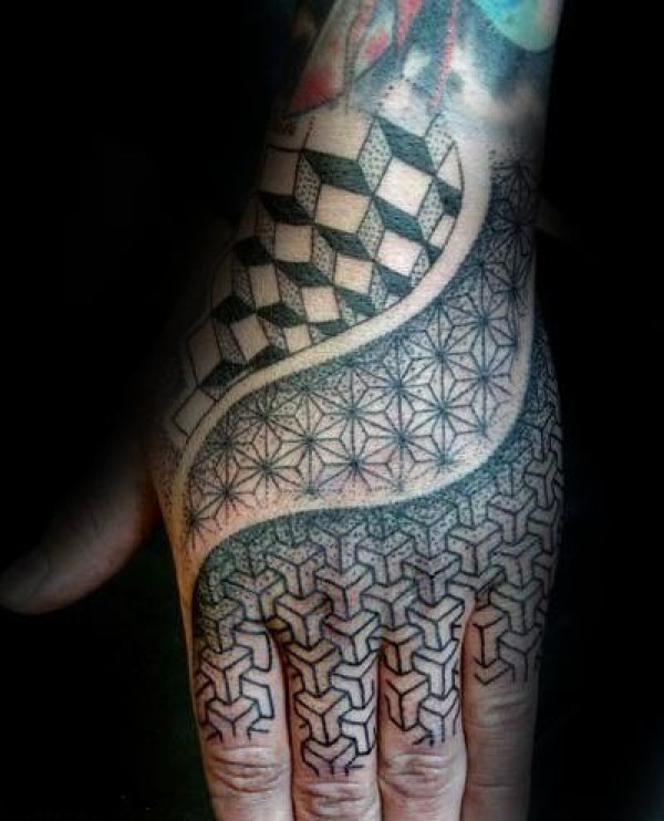 几何 纹身图案 设计感十足的手部几何纹身图案