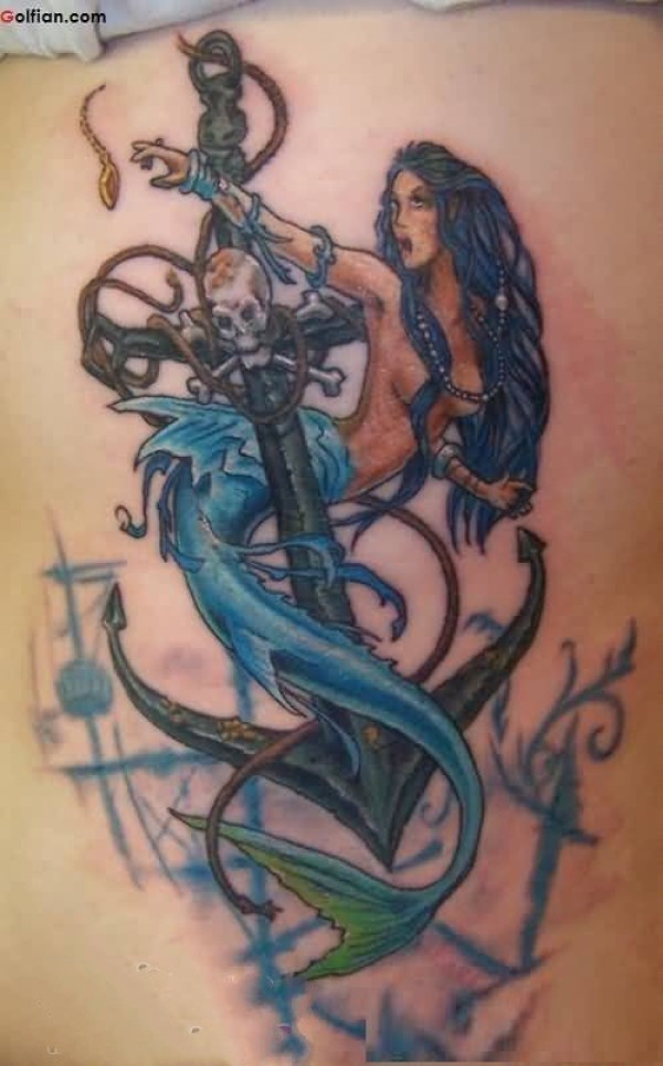 纹身美人鱼 魅力动人的美人鱼纹身图案