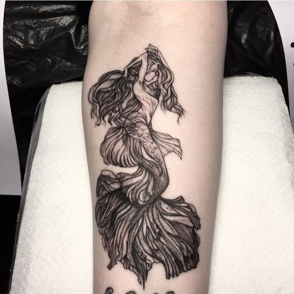 纹身美人鱼 魅力动人的美人鱼纹身图案