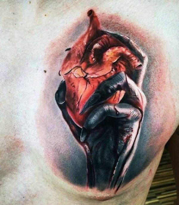 心脏纹身图案 真实而又血腥的心脏纹身图案