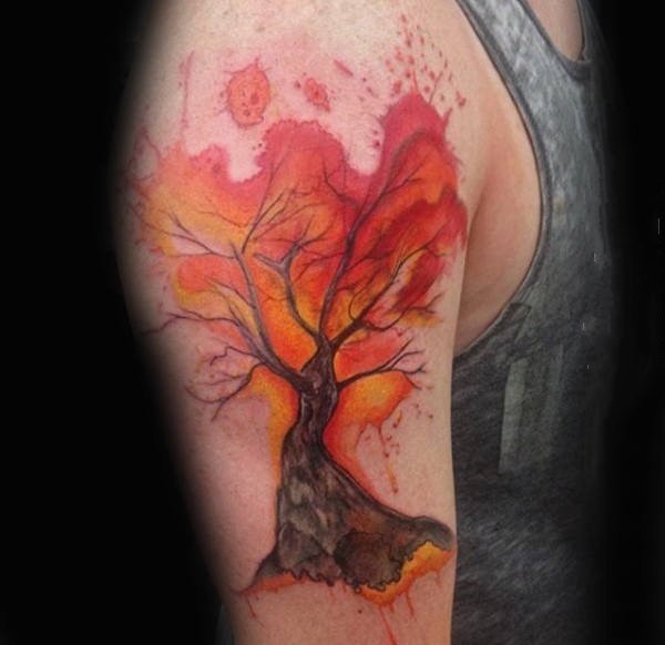 树枝纹身 生意盎然的水彩树枝纹身图案