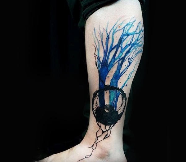 树枝纹身 生意盎然的水彩树枝纹身图案