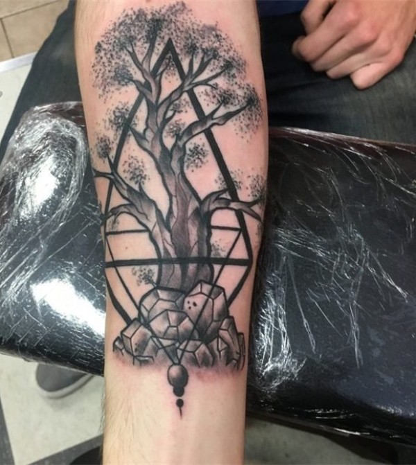 纹身树枝 枝繁叶茂的树枝纹身图案