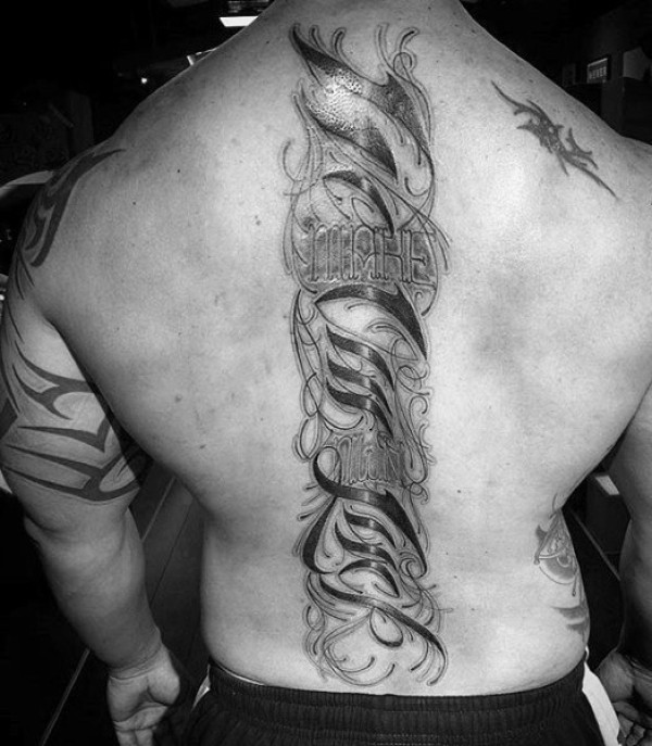 脊柱纹身男 别致而又大气的脊柱纹身图案