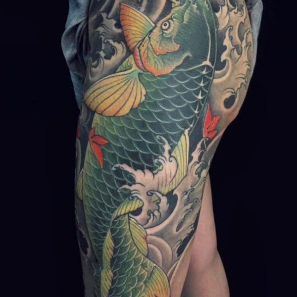 纹身锦鲤图案 色彩绚丽的锦鲤纹身图案