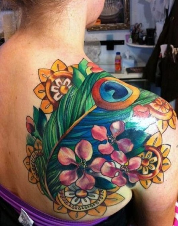 孔雀纹身图片 色彩绚丽多彩的孔雀纹身图案