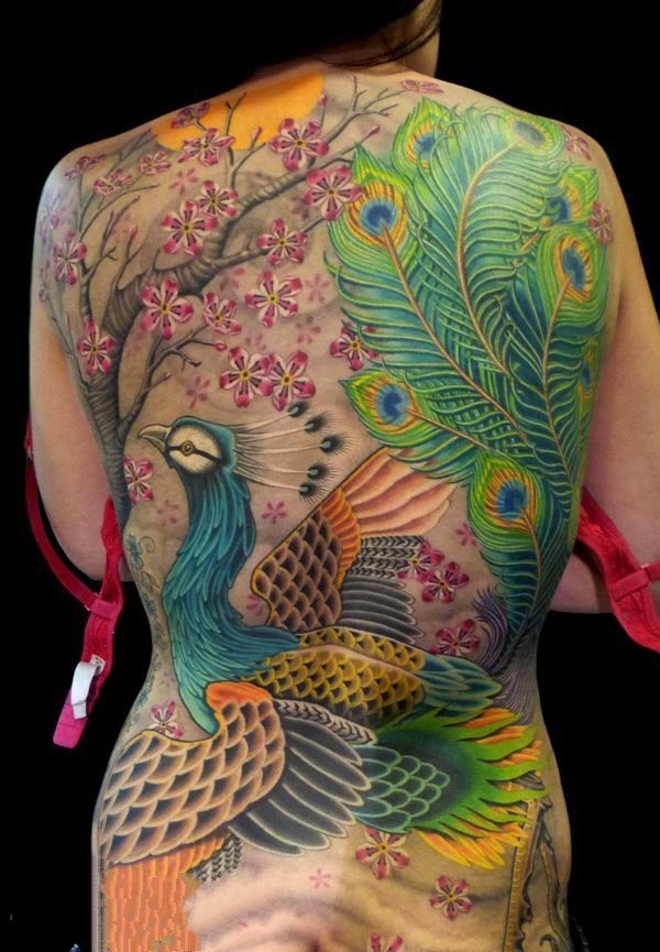 孔雀纹身图片 色彩绚丽多彩的孔雀纹身图案
