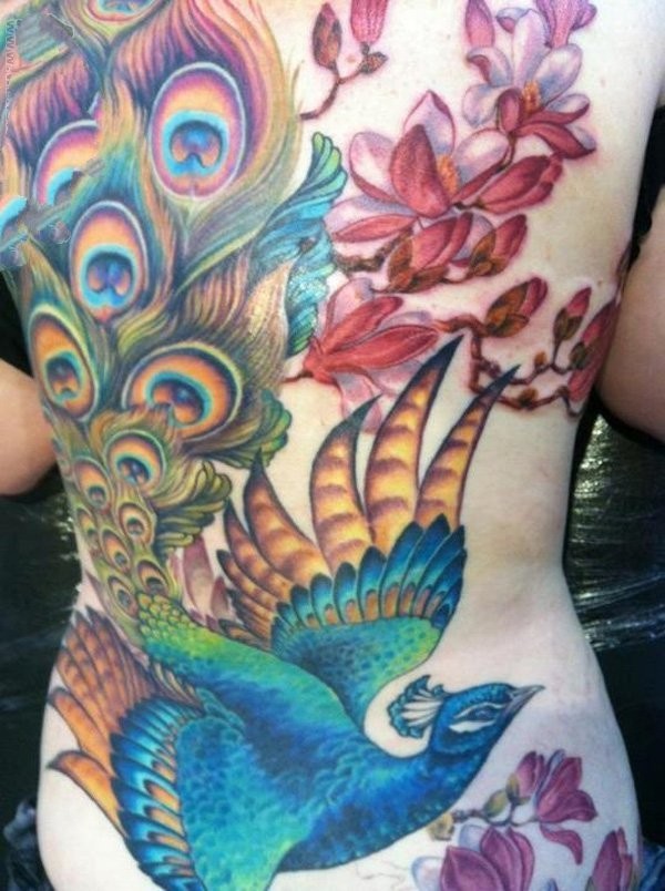 孔雀纹身图片 色彩绚丽多彩的孔雀纹身图案
