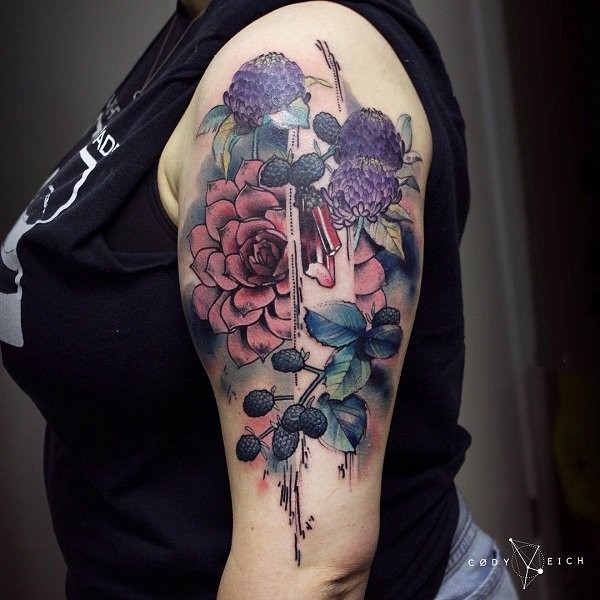 后肩唯美花藤英文图案图片_植物纹身图案大全_纹身图吧