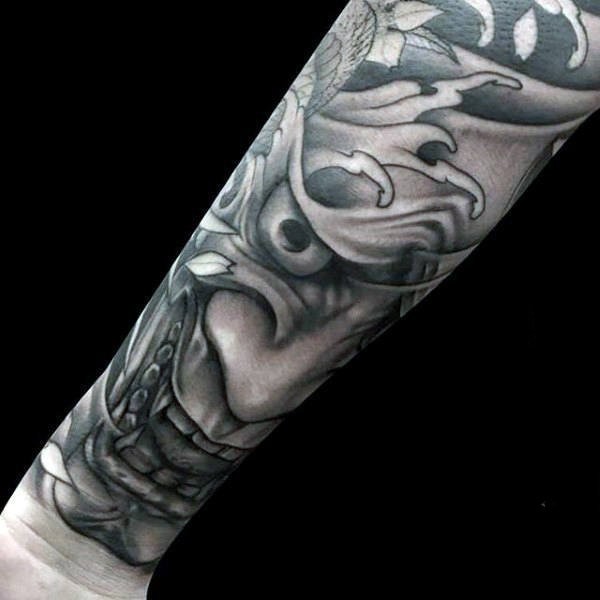 日本武士 纹身 色调暗沉的日本武士纹身图案