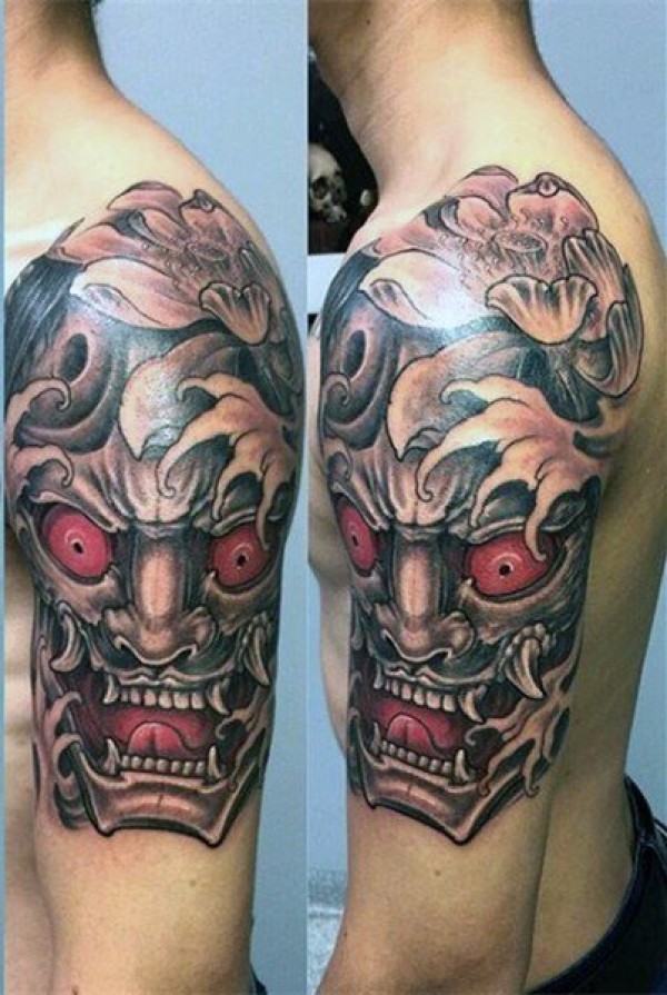 日本武士 纹身 色调暗沉的日本武士纹身图案