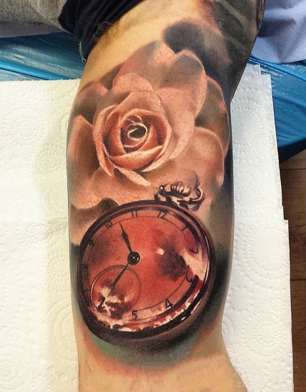 欧美玫瑰纹身 男生手臂上花朵纹身图片