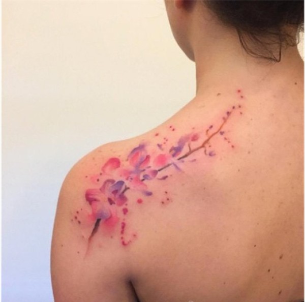 女性肩膀上多款漂亮的花朵纹身图案