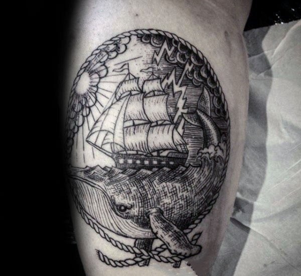 纹身鲸鱼 多款黑灰色的鲸鱼纹身图案