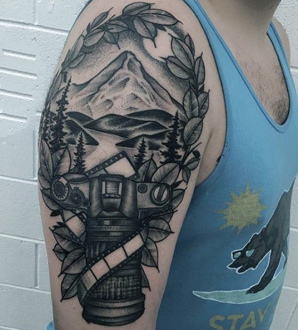 欧美花臂纹身_22张霸气黑灰欧美大黑花臂纹身图案作品图片