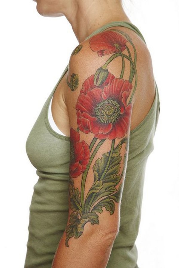 罂粟花纹身图片 鲜丽娇媚的罂粟花纹身图案
