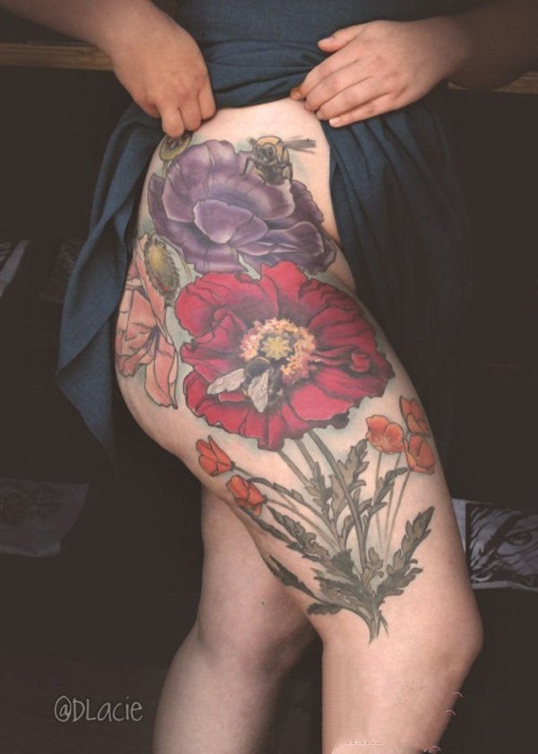 罂粟花纹身图片 鲜丽娇媚的罂粟花纹身图案