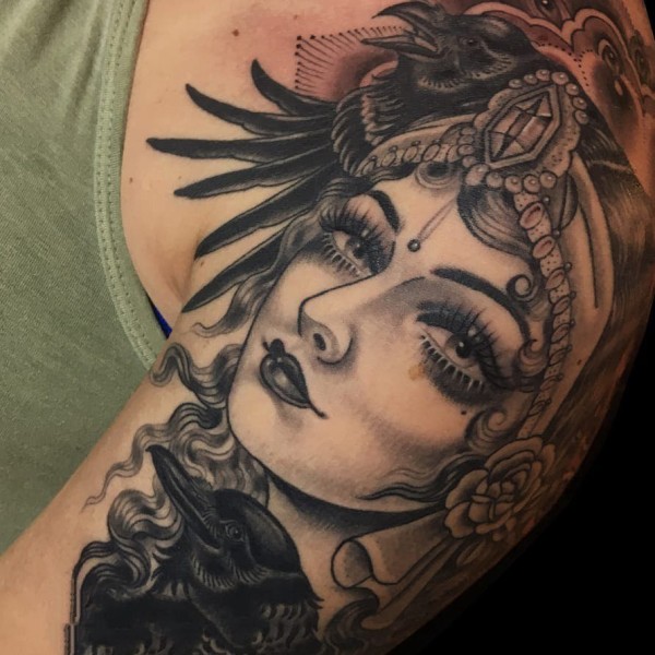女性人物纹身图案 男生大臂纹身女性人物纹身图案
