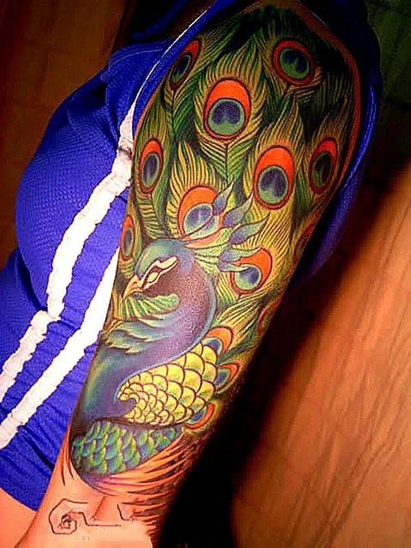 孔雀纹身图片 五光十色的孔雀纹身图案