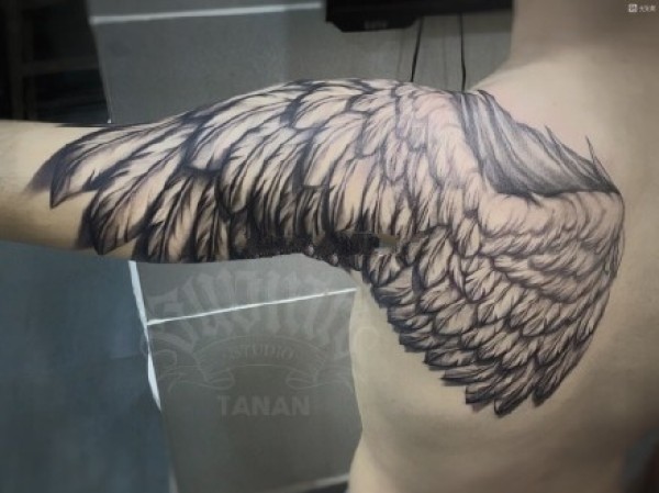 霸气翅膀:适合男性的一组霸气翅膀纹身图案9张