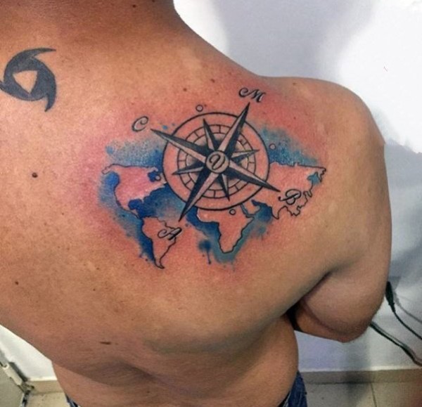纹身指南针 多款水彩泼墨的指南针纹身图案
