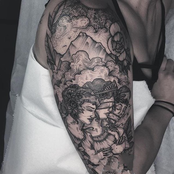 欧美花臂纹身_22张霸气黑灰欧美大黑花臂纹身图案作品图片