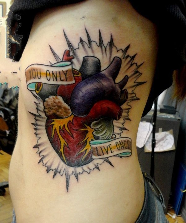 女生锁骨下黑灰素描点刺技巧创意比心纹身图片