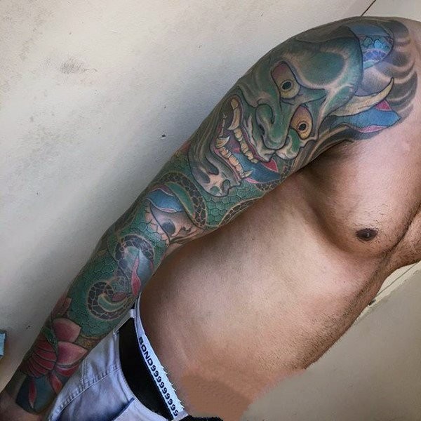 日本鬼面具纹身 鬼面獠牙的日本鬼面具纹身图片