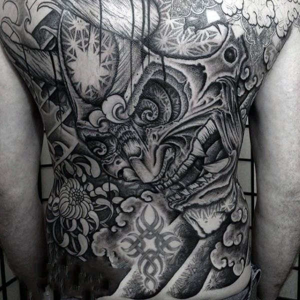日本鬼面具纹身 鬼面獠牙的日本鬼面具纹身图片
